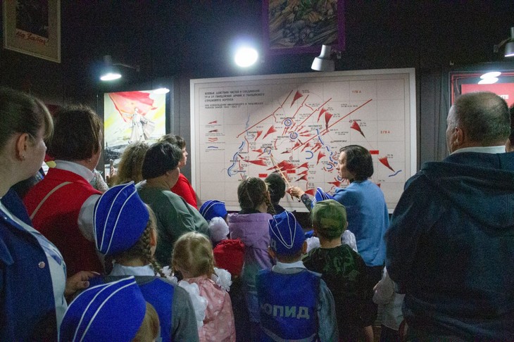 Участники акции посетили Музей 13 Героев Советского Союза в хуторе Красновка. Экскурсовод Анна Ореховская рассказала посетителям о подвиге 13 гвардейцев. Дети с родителями и сотрудниками детского сада отдали дань памяти и уважения защитникам нашей земли, возложив цветы к братской могиле Героев.