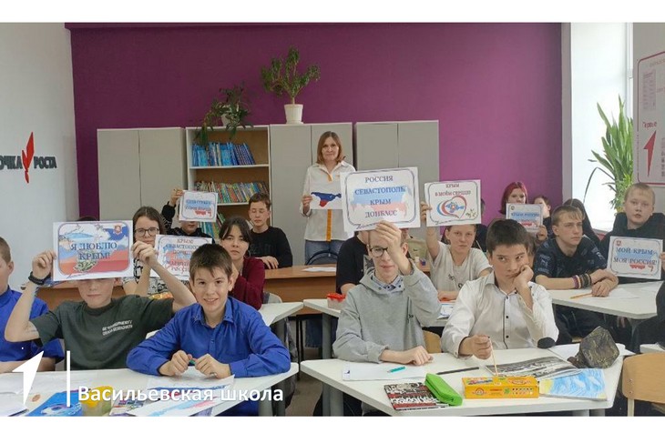 Первые из Митякинской, Васильевской и Деркульской школ приняли участие во Всероссийской акции «Краски Крыма», приуроченной ко Дню воссоединения Крыма с Россией.