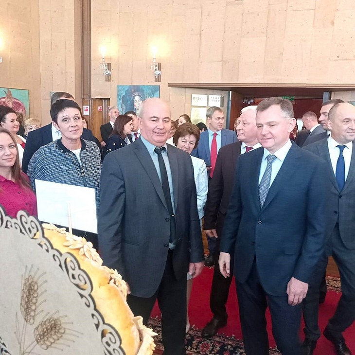 Центральным украшением праздника стала масштабная выставка‑ярмарка караваев. Каждый муниципалитет подошёл к заданию с душой: хлебные шедевры не просто радовали глаз, но и рассказывали о достижениях местных аграриев.