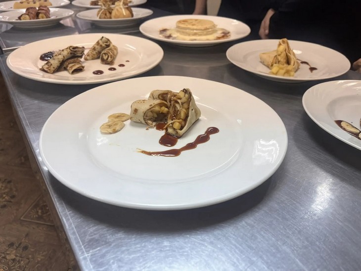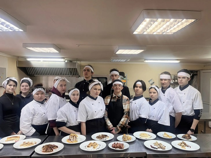 Студенты третьего и четвертого курсов, обучающиеся по программе 43.02.15, соревновались в мастерстве приготовления блинов с разнообразными начинками.